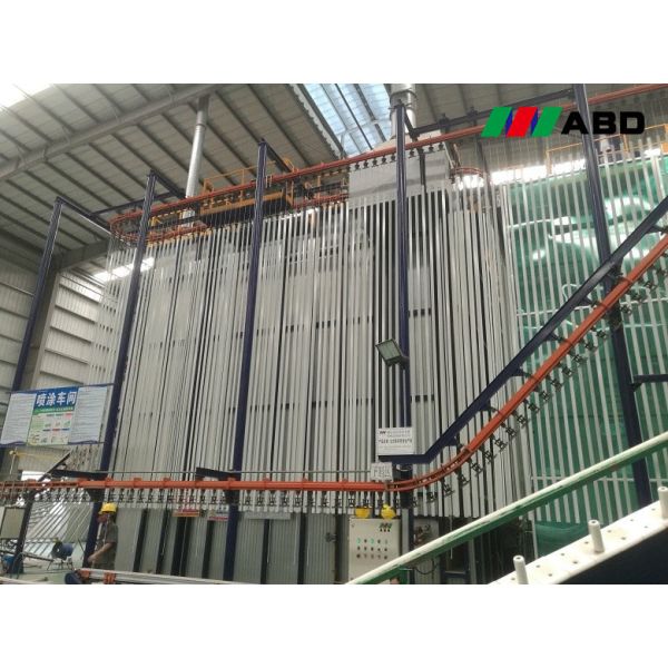 The working process for this line is, loading --- spray type pre-treatment --- water drying --- automatic powder coating --- automatic powder curing --- cooling --- unloading.